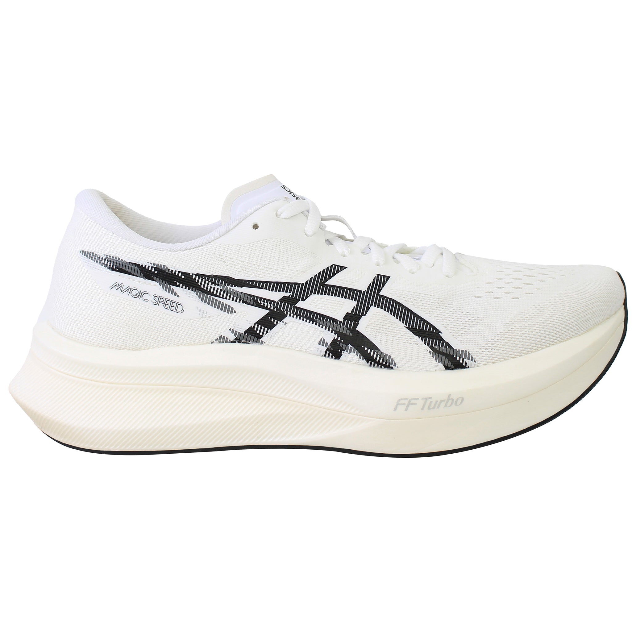 The Asics Magic Speed 4 Men’s Running Shoes are designed for runners chasing speed, whether during training sessions or race day. Lightweight, responsive, and efficient, this shoe features a carbon- and TPU-plate design sandwiched between layers of FF BLAST™ PLUS cushioning for a snappy, propulsive ride. The engineered mesh upper ensures breathability and comfort, while the sleek white colorway delivers a clean, fast look. Perfect for tempo runs, interval training, and competition, the Magic Speed 4 is built to help you push the pace.