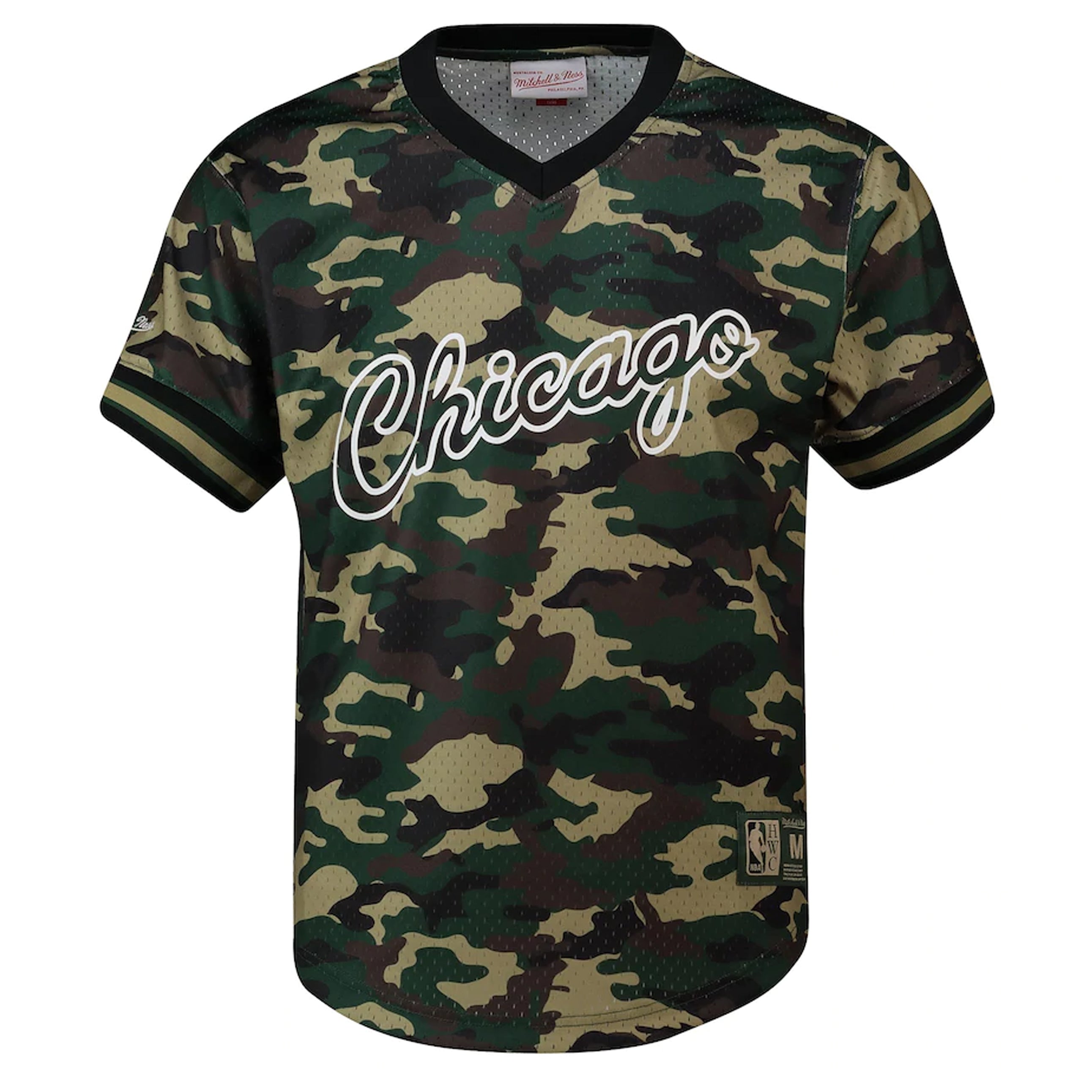 The Mitchell & Ness NBA Chicago Bulls Men's Camo Mesh T-Shirt is the perfect blend of team pride and modern style. Made from breathable mesh fabric, this t-shirt ensures comfort and ventilation, making it ideal for game days, casual outings, or workouts. Featuring the iconic Chicago Bulls logo on the chest, it proudly displays your loyalty to the team. The unique camo pattern adds an edgy, contemporary twist to the classic design, giving it a bold, sporty look. With a relaxed fit and classic crew neck, this Mitchell & Ness camo mesh t-shirt is a must-have addition for any Bulls fan looking to elevate their team gear with a modern flair.