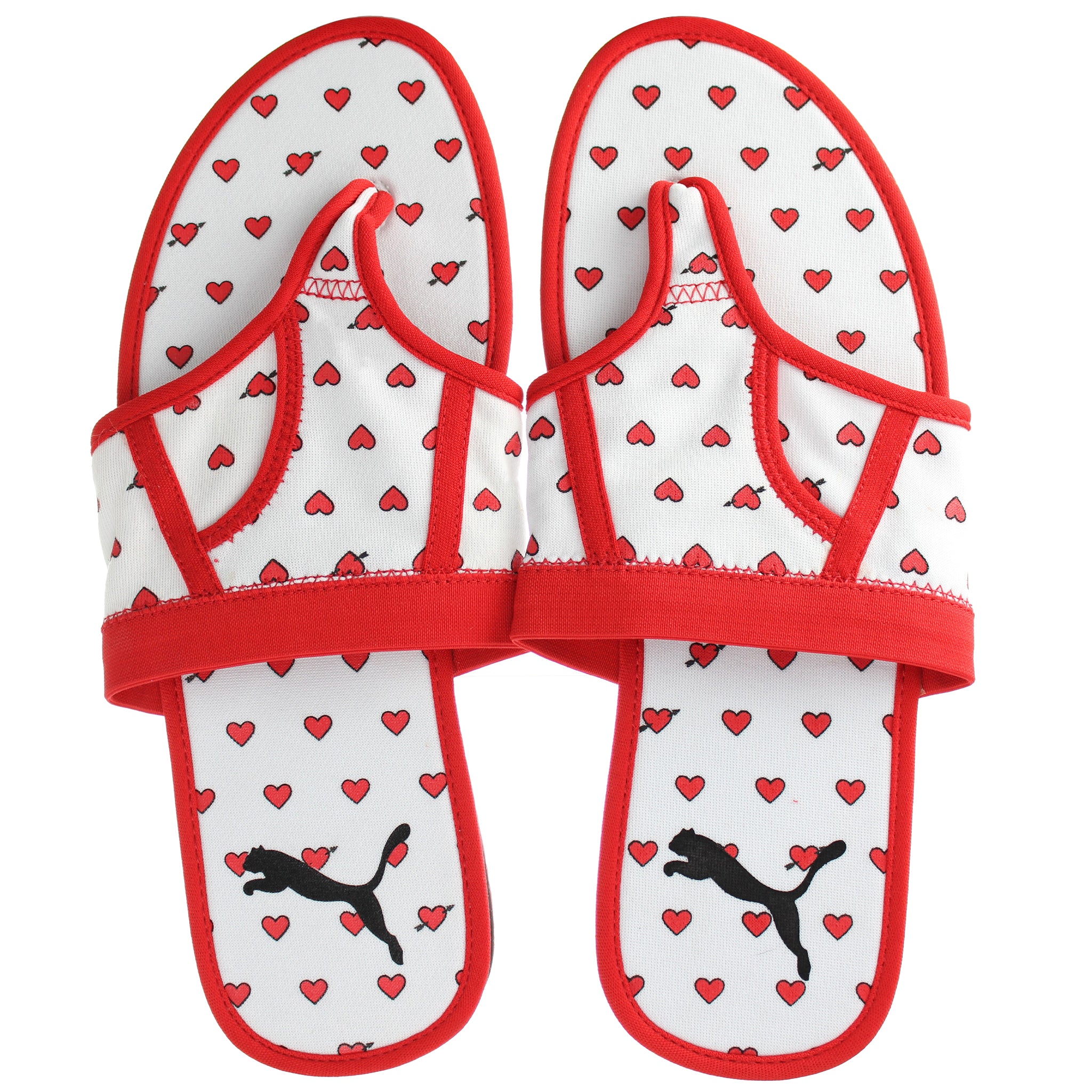 The Puma Brief Case Graphic Women's Flip-Flops combine comfort and playful style, perfect for casual summer days. Featuring a vibrant red and white design, the straps are outlined in bold red with a soft, fabric-like texture. The footbed is decorated with a fun heart pattern, adding a touch of whimsy to your look. Finished with the iconic Puma logo in black, these flip-flops offer a sporty yet stylish edge. Whether lounging by the pool or strolling on the beach, these flip-flops are a fashionable and comfortable choice for your warm-weather wardrobe.