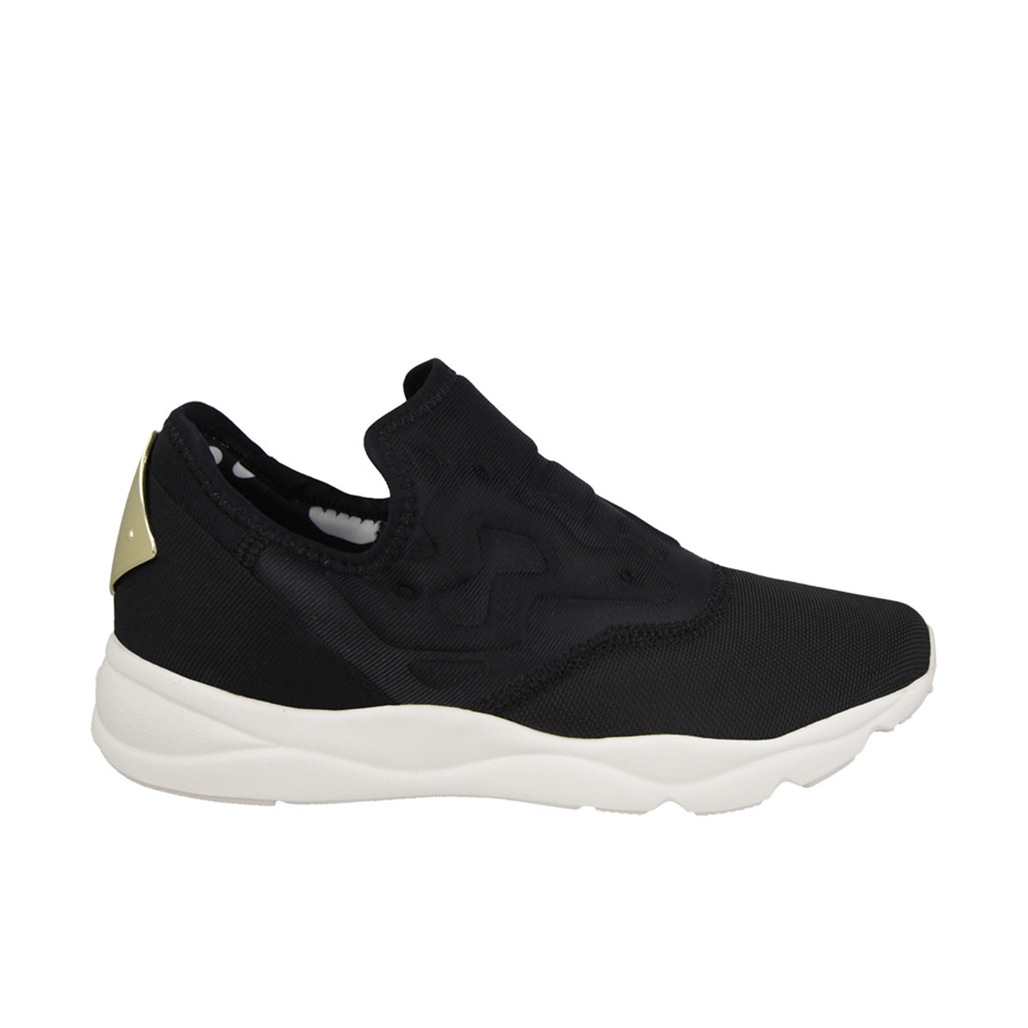 The Reebok Furylite Slip-On Black Synthetic Women's Trainers combine contemporary design with comfort and ease. Featuring a sleek black synthetic upper, these slip-on trainers are designed for quick and convenient wear, offering a snug, sock-like fit. The minimalist design is enhanced with subtle embossed details and a metallic accent at the heel, giving them a modern, stylish edge. The lightweight midsole provides cushioning and support, while the flexible rubber outsole ensures durability and traction. Perfect for a sporty look or casual wear, these trainers offer both style and practicality.