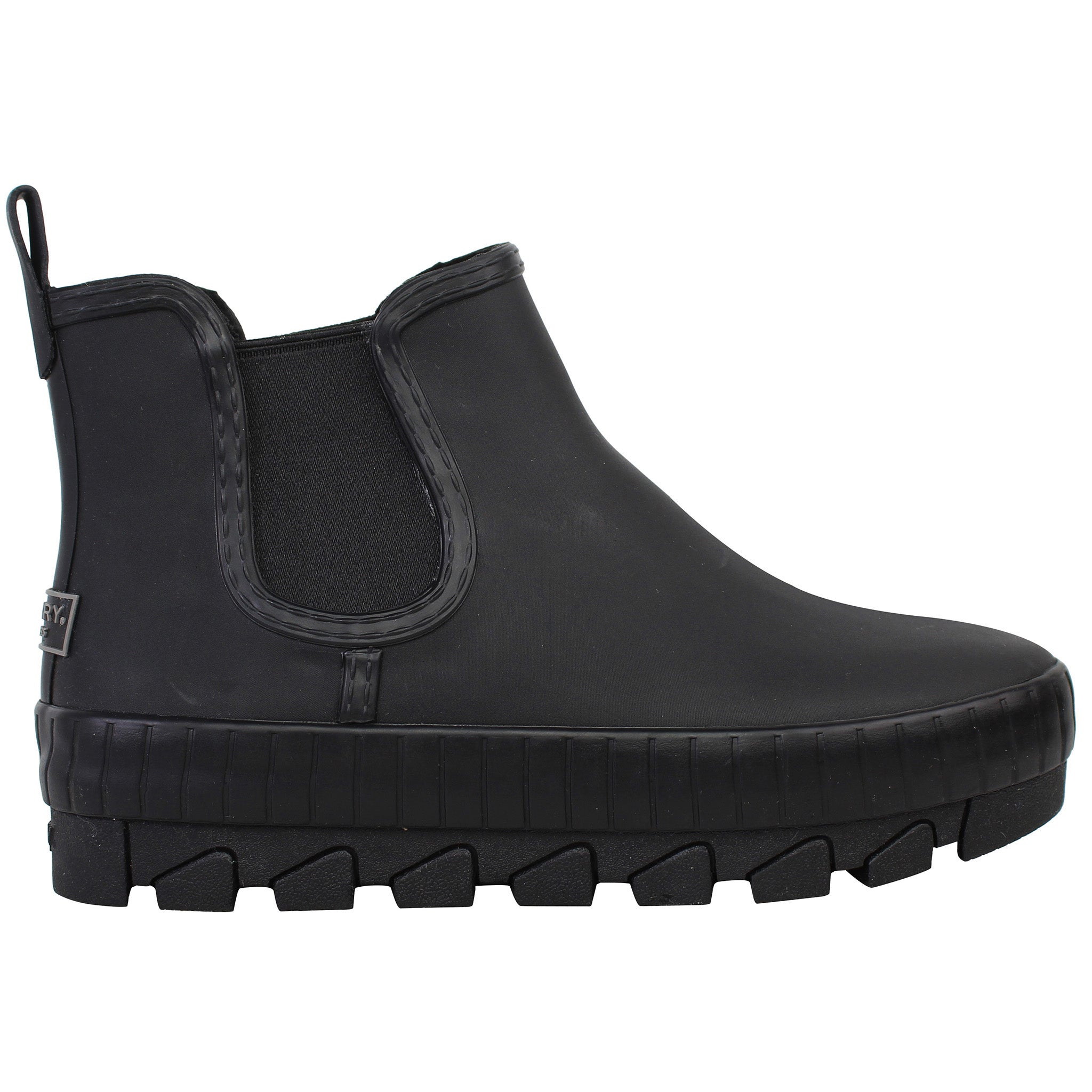 The Sperry Torrent Chelsea Black Women's Boots are designed to combine style and practicality. These sleek, waterproof ankle boots feature an easy-to-slip-on Chelsea boot design with elastic side panels for a comfortable and secure fit. The black rubber upper ensures protection from the elements, while the rugged, textured sole provides excellent traction, making them ideal for wet or slippery conditions. Whether you're heading out for a rainy day or just want a stylish, durable boot for everyday wear, these versatile boots are a great addition to any wardrobe.