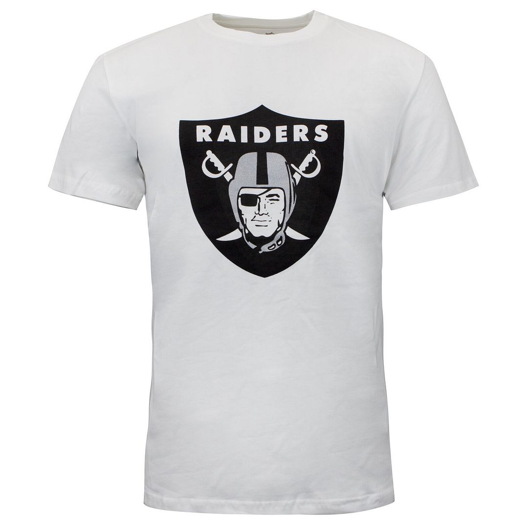 Crafted from soft, breathable cotton fabric, this T-shirt ensures maximum comfort whether you're in the stands cheering or watching the game from home. The bold Oakland Raiders logo is prominently featured on the chest, standing out against the crisp white background for a striking, yet timeless look.